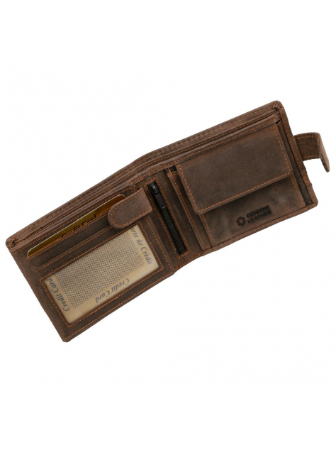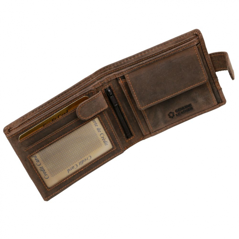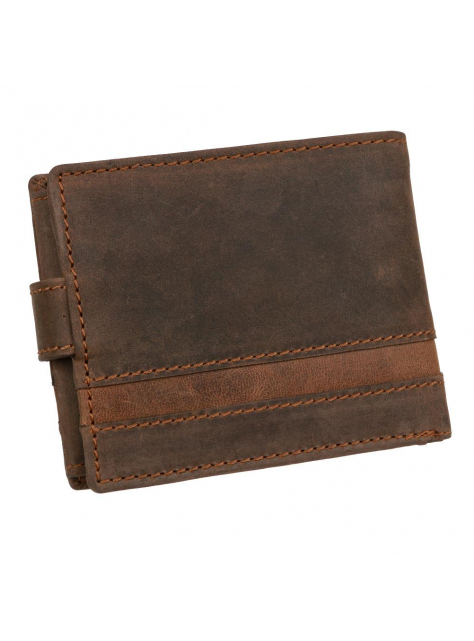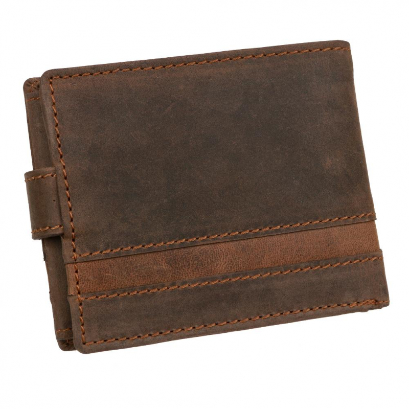 Ponúkame pánsku peňaženku z brúsenej kože rustikálnej úpravy so starožitnou patinou. Hnedá peňaženka so zapínaním na pracku, klasický formát na šírku.