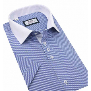 Modrá prúžkovaná košeľa s bielym golierom BEVA KLASIK kr.rukáv