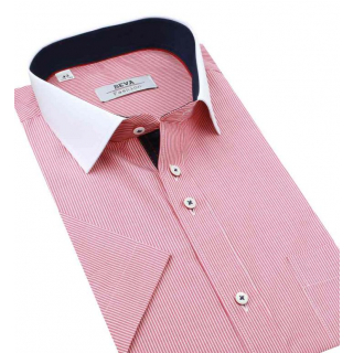Červená košeľa s bielym golierom BEVA KLASIK kr.rukáv