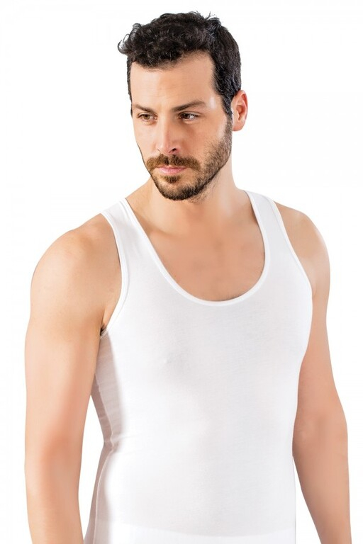 Pánske elastické biele tielko z bambusového materiálu. Hladká tkanina, na dotyk príjemná, elastická.