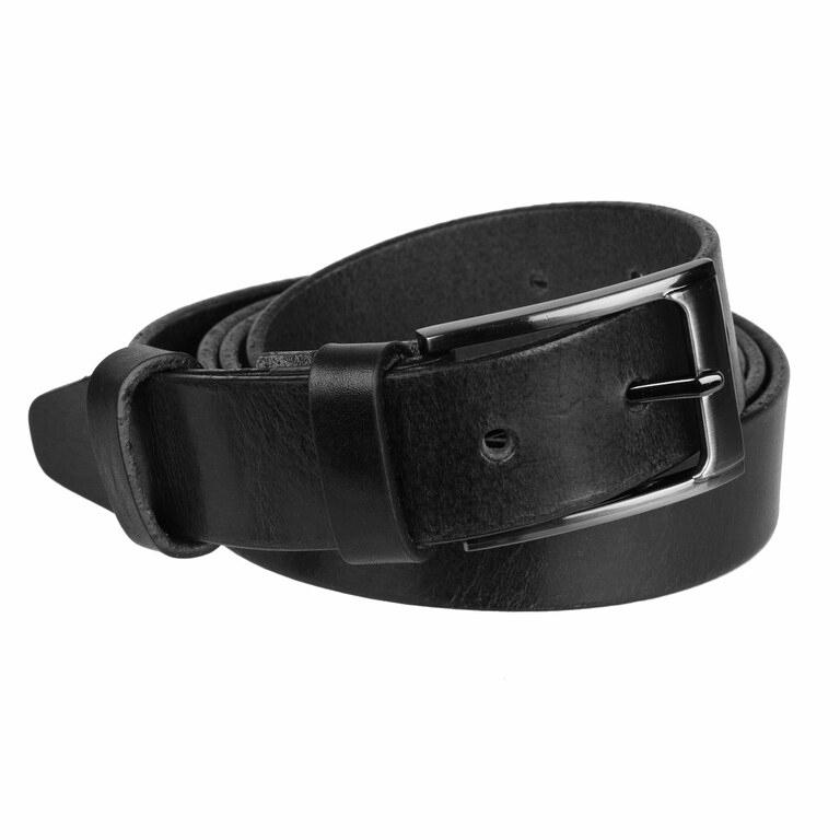 Remeň - pravá koža v čiernom prevedení, šírka 2,8 cm, h 3 mm, povrch mierne zmatnený,