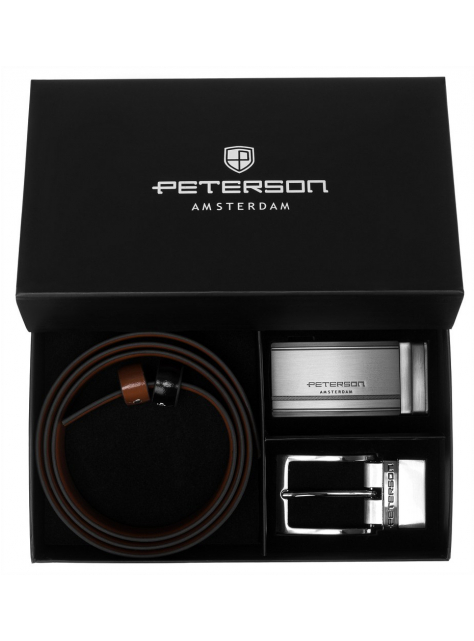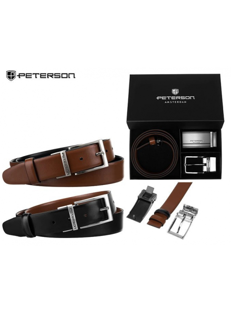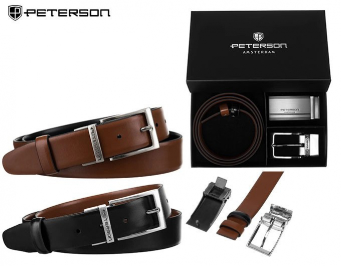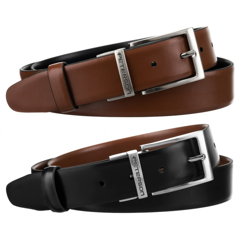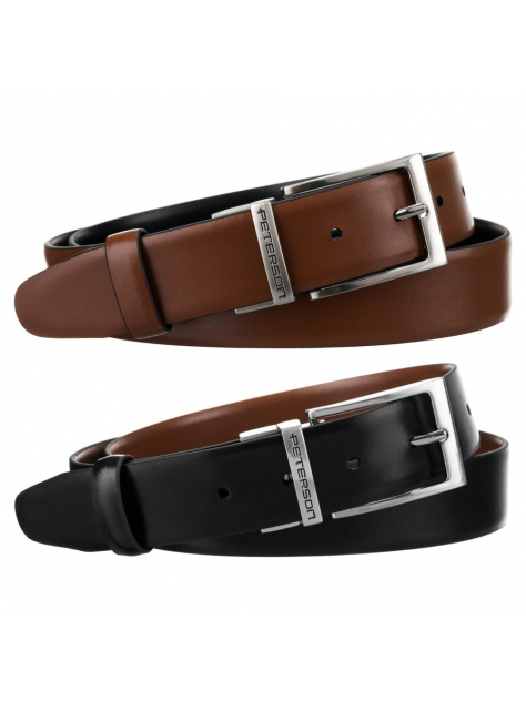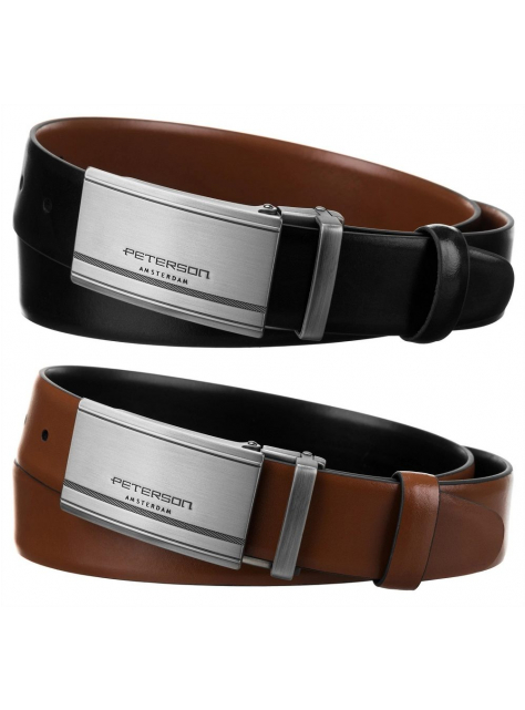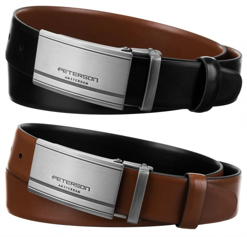 Ponúkame Vám elegantný a štýlový pánsky kožený opasok s dvomi masívnymi kovovými prackami značky PETERSON.