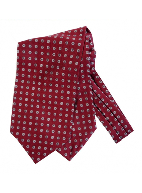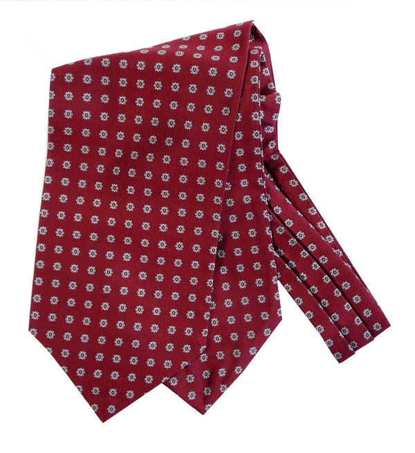 Pánsky hodvábny kravatový šál ASCOT (kravatová šatka) - v elegantnej vínovo-bordeovej farbe s bielym vzorom.