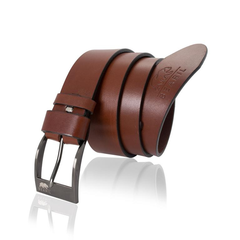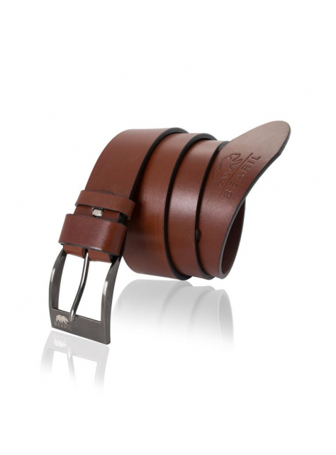 Pánsky športovo-elegantný opasok zn. BEARIL v hnedej koži, pracka s klasickým zapínaním. Balenie v krabičke.