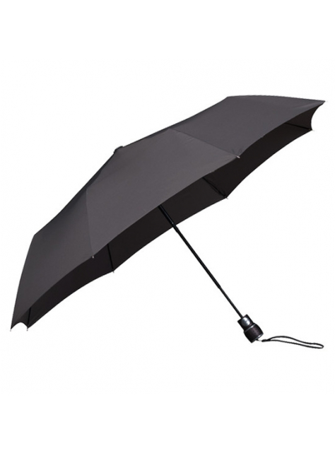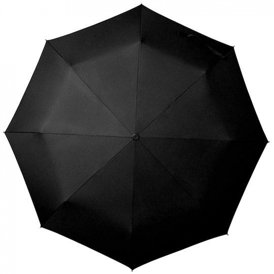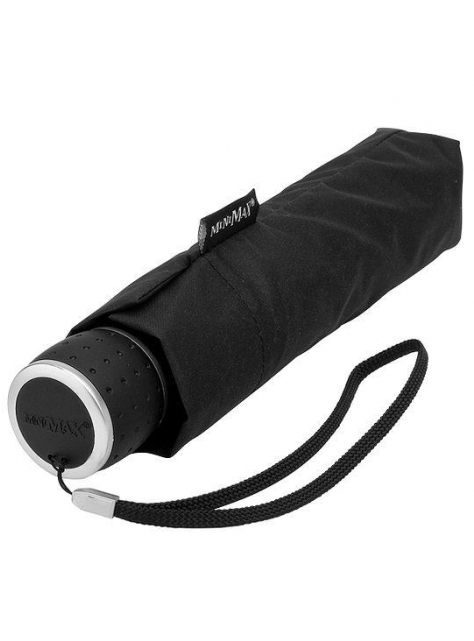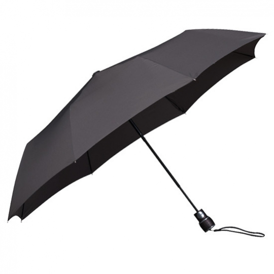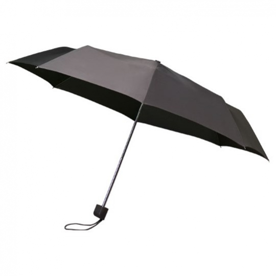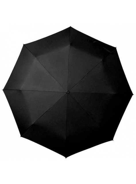 Čierny skladací dáždnik s manuálnym otváraním, vetruodolný v praktickom menšom prevedení. Balenie v puzdre.