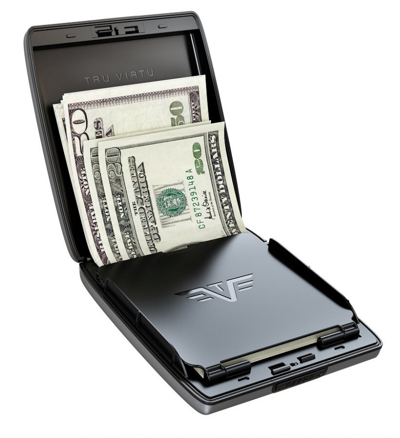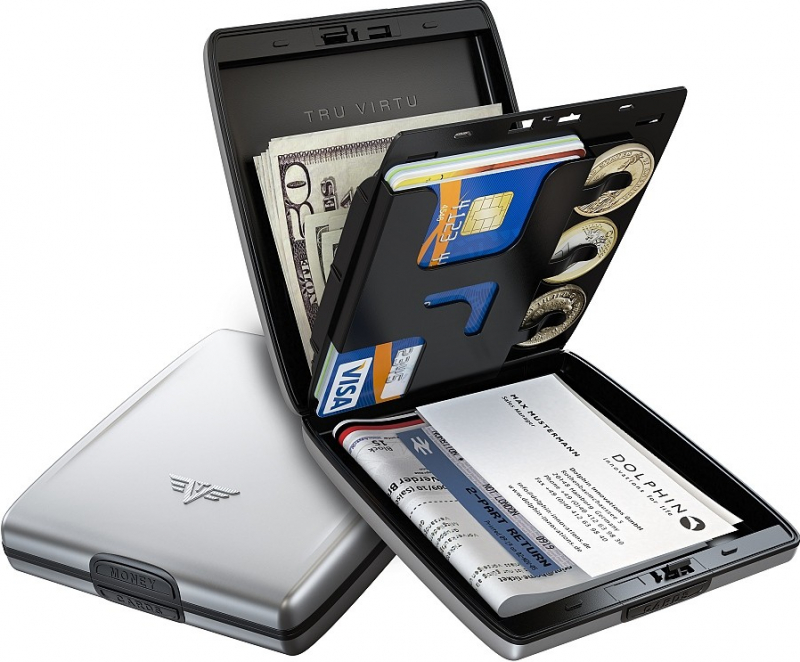 Tru Virtu "BELUGA" - inovatívna peňaženka určená pre bezpečné uloženie bankoviek, kariet, príp. vizitiek. Dvojkomorový systém pre oddelené uskladnenie obsahu so samostatným otváraním cez tlačidlá - poskytuje priestor pre uloženie až 30 bankoviek (rôznych veľkostí), 4 bankových kárt a až 17 vizitiek.