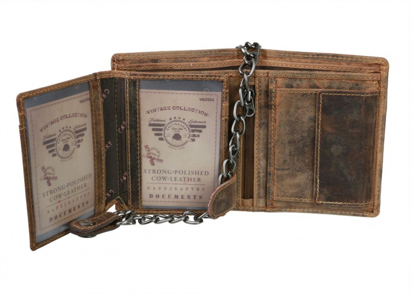 Peňaženka GreenBurry REBEL s retiazkou, vintage hnedá