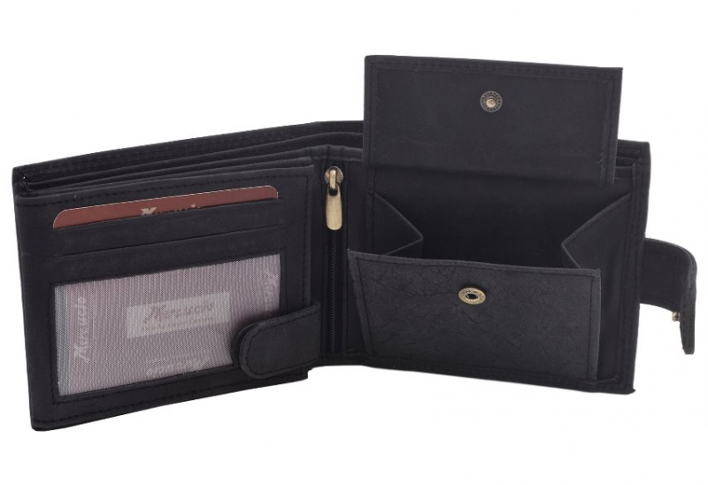 Zapínanie na vonkajšiu aj vnútornú pracku. Zipsový priečinok s prístupom v strede - po celej ploche peňaženky je priestor pre ďalšie osobnné doklady, karty, bankovky a pod.. Veľkosť dokladových priečinkov vyhovuje aj dokladom staršieho formátu vrátane vodičského preukazu.