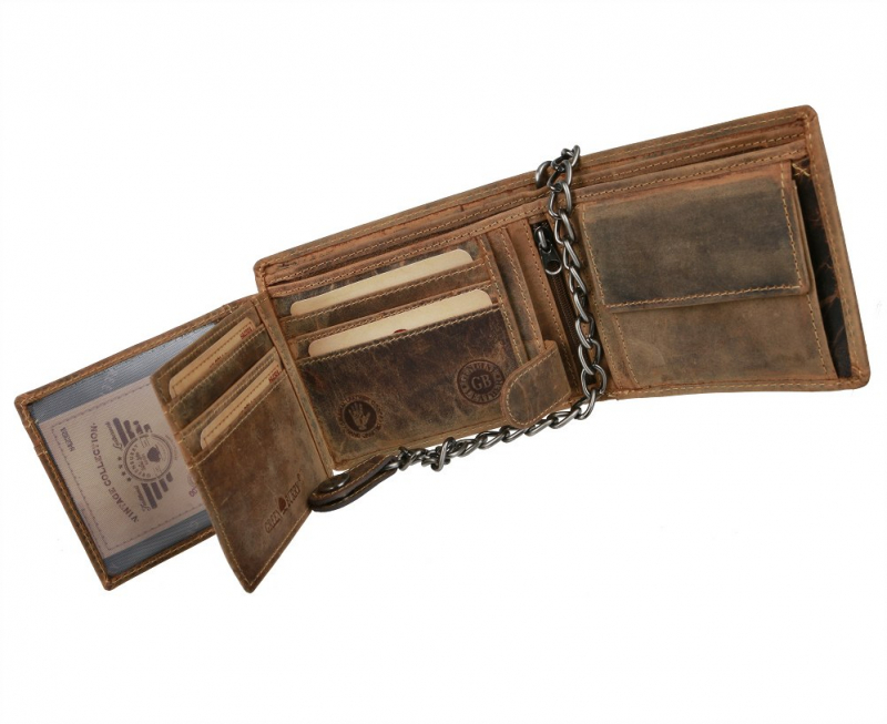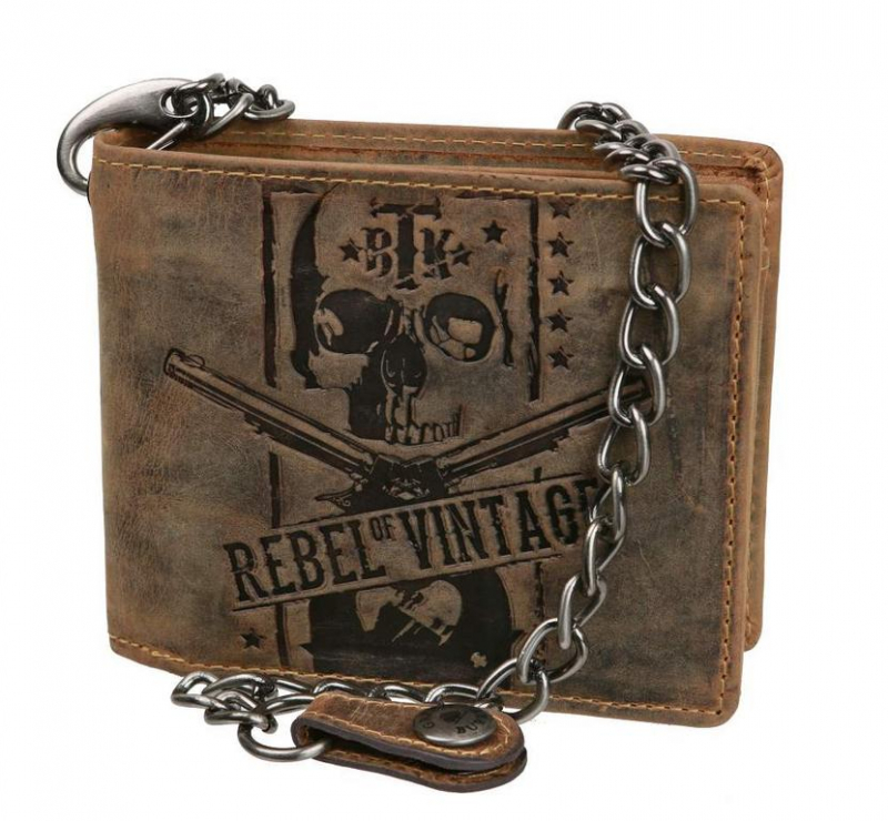 Pánska peňaženka s odnímateľnou retiazkou s motívom lebky - model REBEL OF VINTAGE. Peňaženka je vhodná aj pre starší väčší typ osobných dokladov.