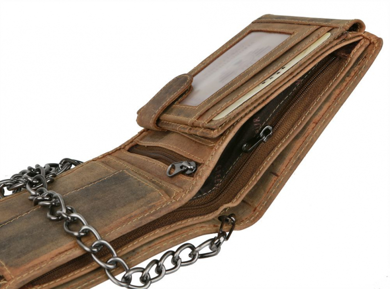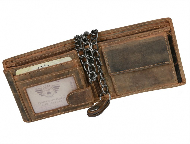 Peňaženka s retiazkou vintage REBEL hnedá koža