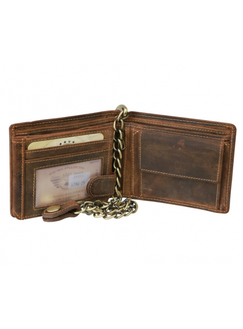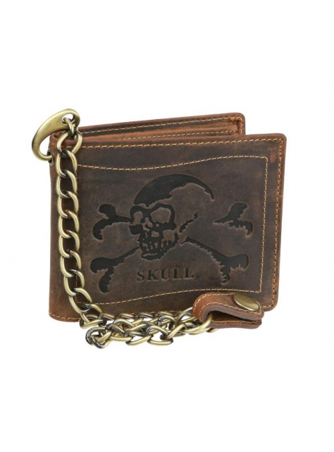 Peňaženka s retiazkou vintage SKULL hnedá koža