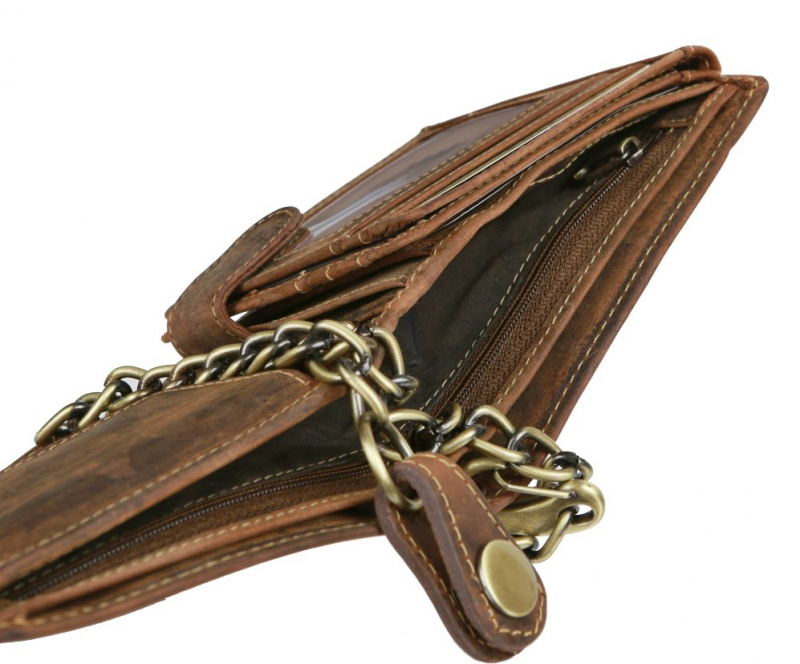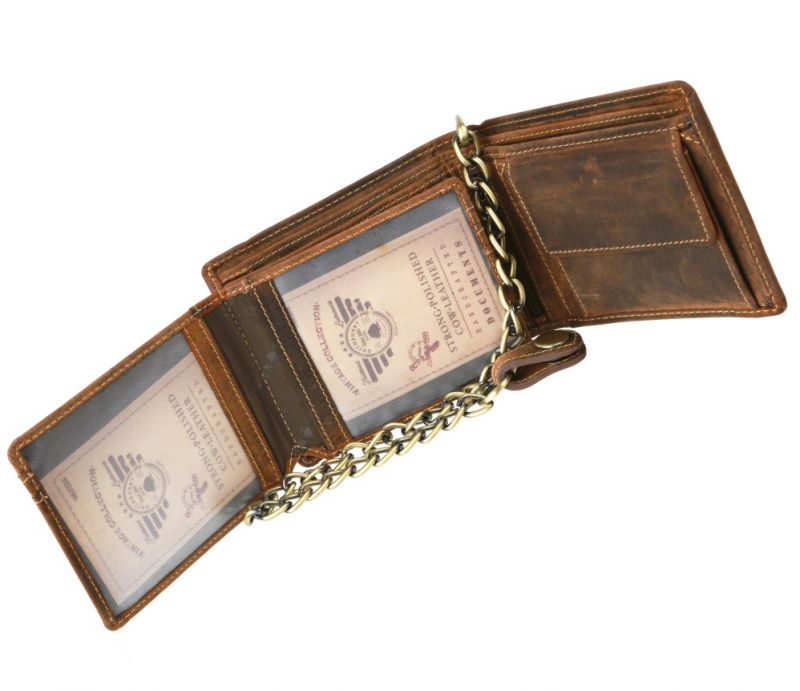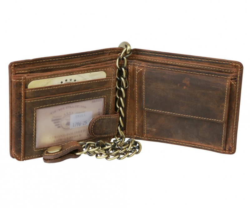 Pánska peňaženka s odnímateľnou retiazkou s motívom lebky - model SKULL OF VINTAGE. Peňaženka je vhodná aj pre starší väčší typ osobných dokladov.