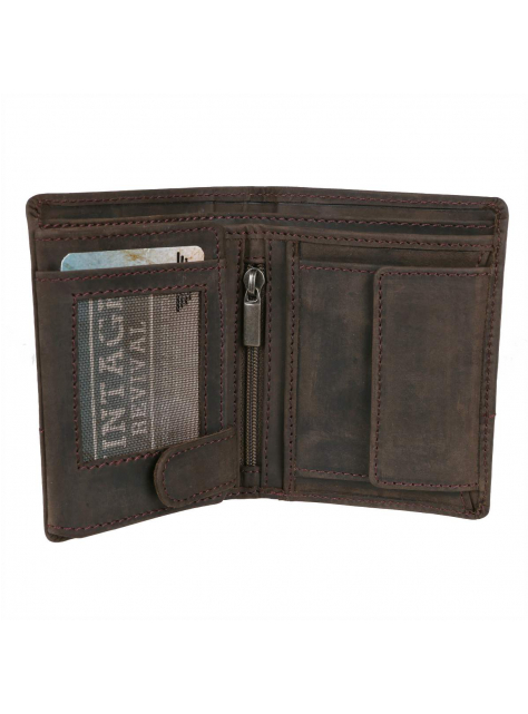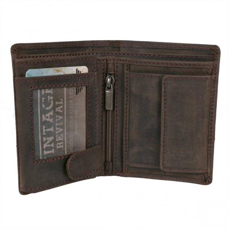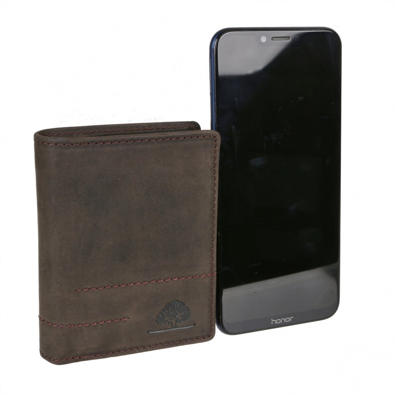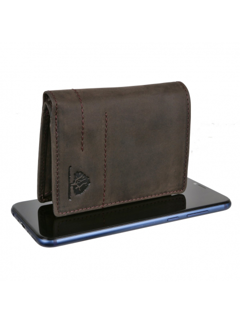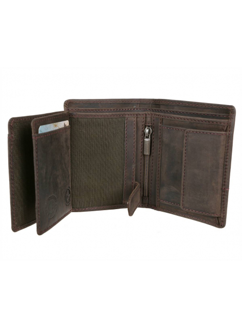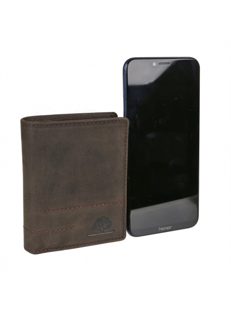 Peňaženka GreenBurry 11,5 x 8,5 x 3 cm z jemne brúsenej kože z novej kolekcie Vintage Revival Vol.2 - robustná a mierne zmäkčená koža originálnej povrchovej kresby v odľahčenom prevedení. Farebná úprava antická tmavo-hnedá. Kolekciu vystihuje osobitý prírodný charakter a unikátne starožitný povrch.