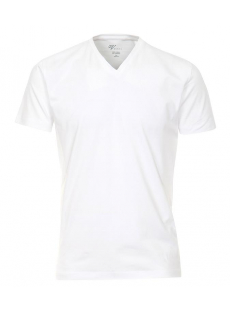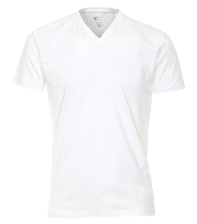 Biele pánske tričko VENTI s krátkym rukávom a výstrihom do V. Príjemný a odolný bavlnený materiál s prímesou elastanu, príjemne odľahčený a mäkký materiál, vysoký komfort pri nosení.