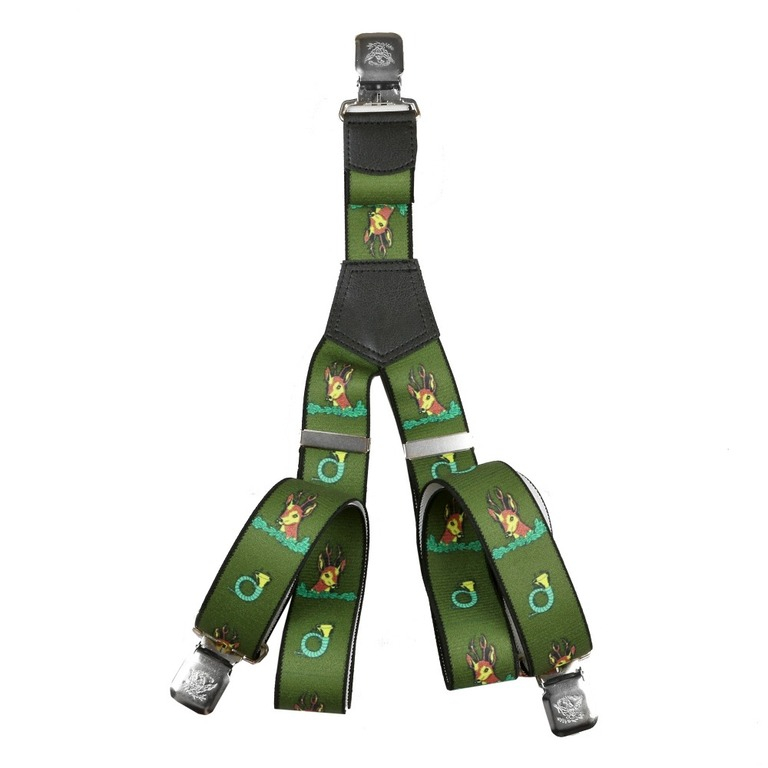 Traky vzorované zelené s poľovníckym vzorom v kvalitnom prevedení - vhodné ako traky športové, voľnočasové, pracovné.