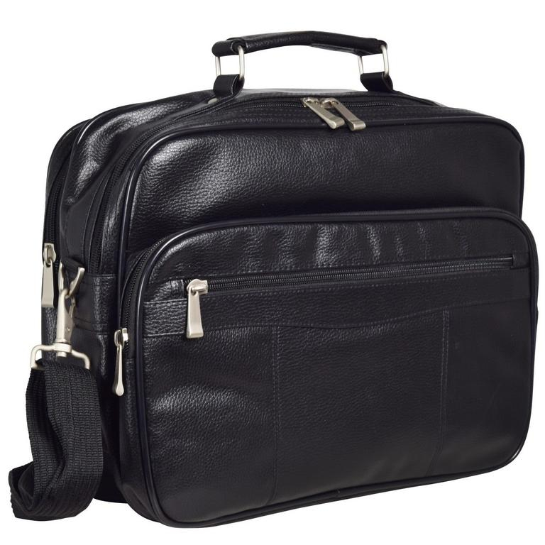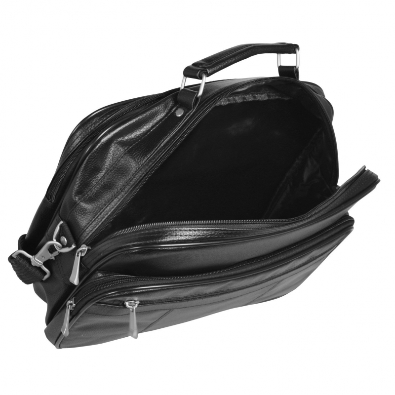 Pánska pracovná taška vo formáte na šírku s priestranným vnútrom - s rukoväťou a ramenným popruhom (na karabínkach, nastaviteľný od 95 - 135 cm).