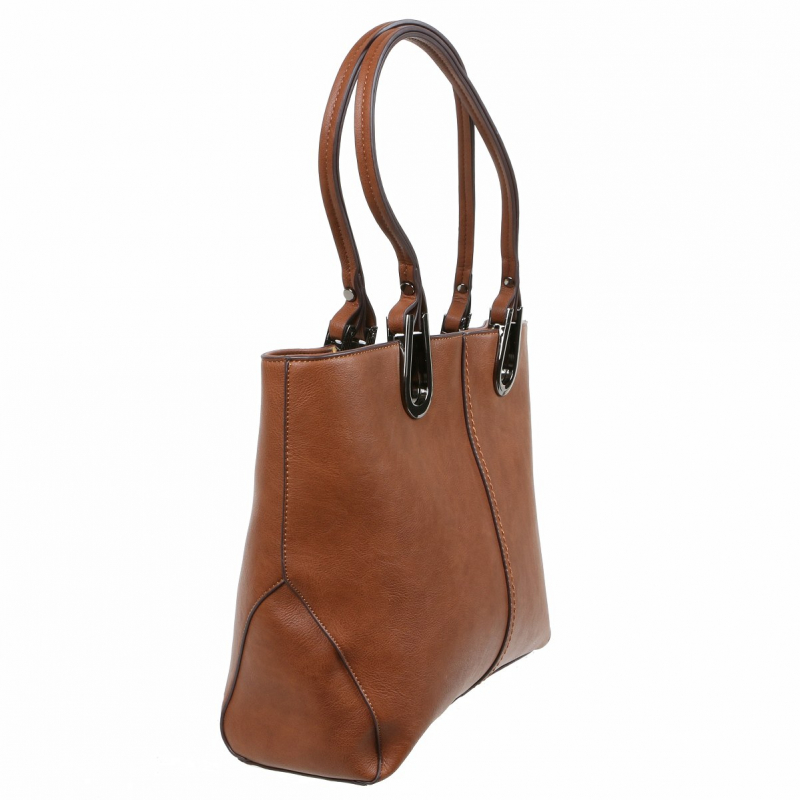 Kvalitná dámska koženková kabela MELANIE PARIS väčšieho typu v odtieni koňak. Elegantný nadčasový tvar s francúzskym šarmom. Model s 2 pevne uchytenými ramienkami - univerzálne rúčky s dĺžkou pre nosenie na ramene, v ruke alebo na predlaktí aby ste vyzerali francúzsky "chic". Dvojkomorový úložný priestor.