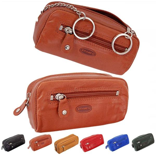 Kožená kľúčenka zn. BRANCO s 2 kovovými krúžkami na retiazkach. Puzdro s uzatváraním na zips poskytuje priestor pre viac kľúčov alebo je univerzálne využiteľné na rôzne drobnosti a pod. Puzdro je vyrobené z mäkkej hovädzej kože.