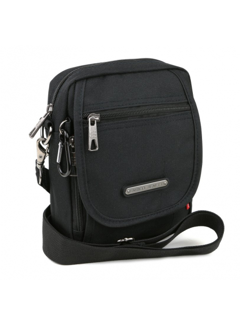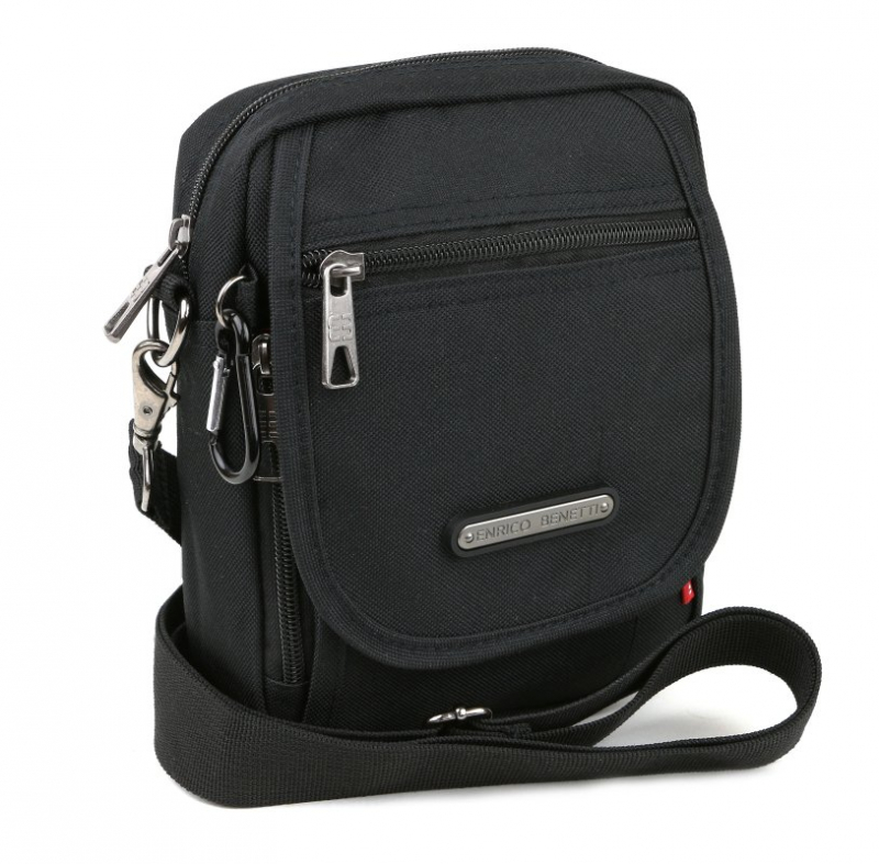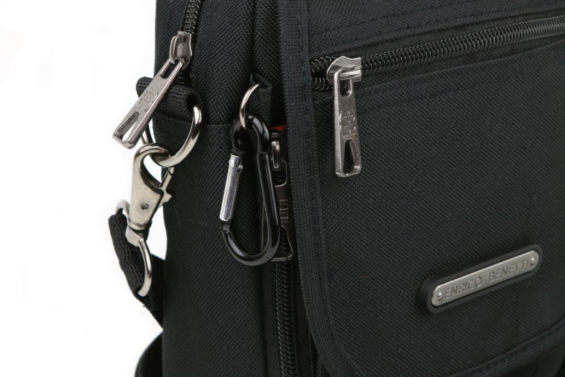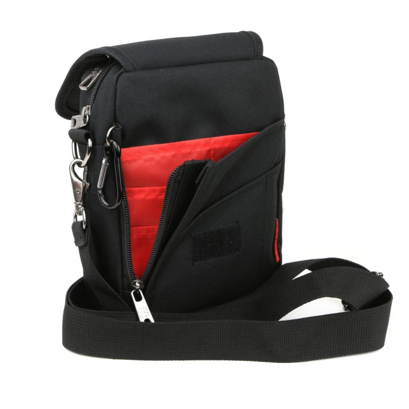 Príručná textilná taštička s poklopom. Ramenný popruh odnímateľný na karabínkach, putko na opasok. Bočná karabínka na uchytenie predmetov. Praktická, ľahká, priestranná.