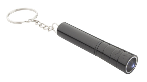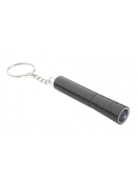 Čierne plastové mini svietidlo s bielym LED svetlom a príveskom na kľúče. Vrátane batérie.