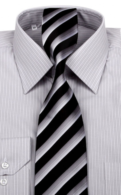 Prúžkovaná bielo-šedá košeľa KLEMON (klasický strih) 200-150