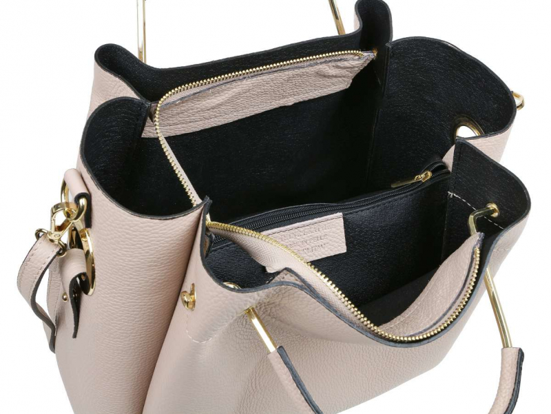 Púdrová kožená kabela s vyberateľným organizérom Made in Italy