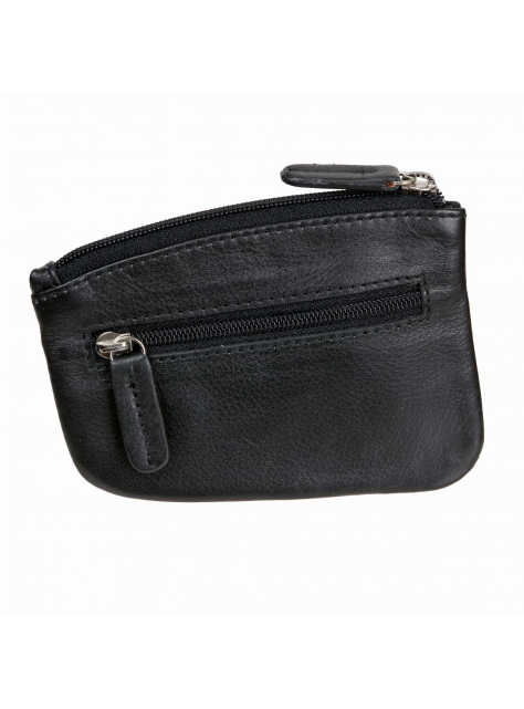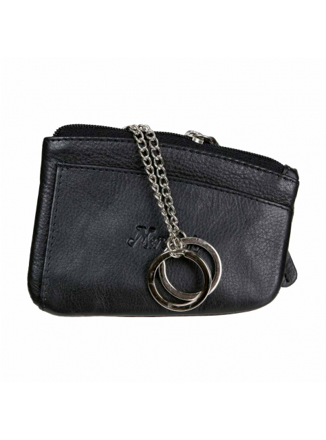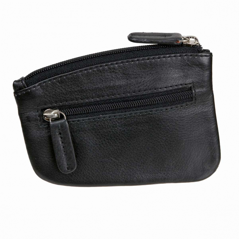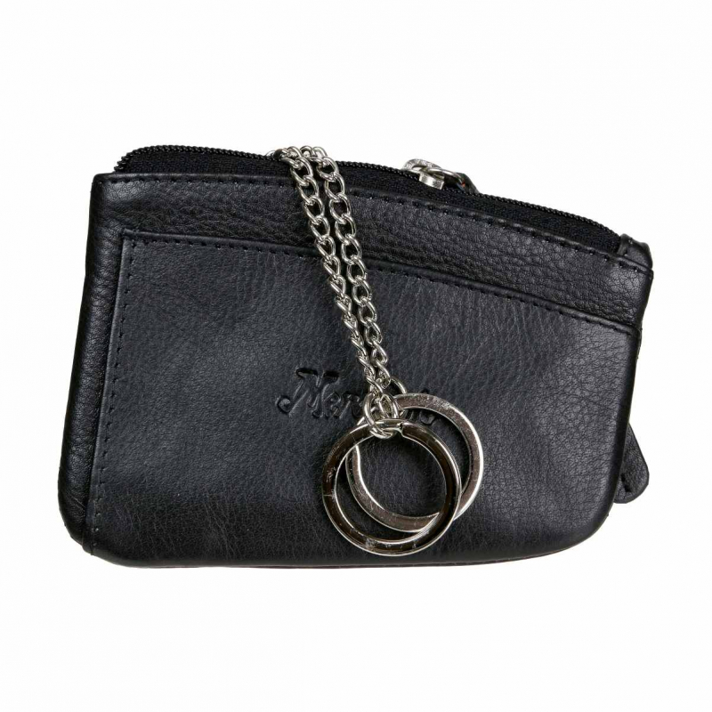 Univerzálne puzdro - kľúčenka z mäkkej nappa kože. Vo vnútri 2 kovové krúžky na retiazkach. Predné puzdro s otvoreným bočným prístupom vhodné na karty, zadné puzdro na zips - vhodné na mince, drobné predmety.