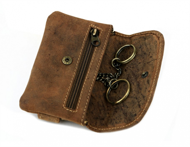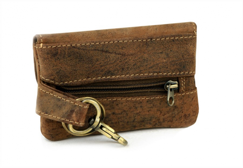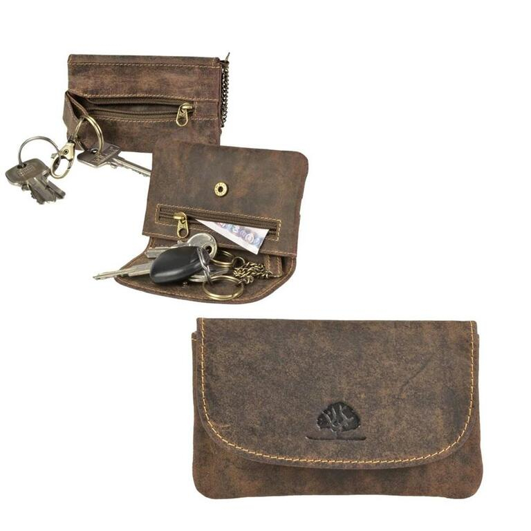 Kožené puzdro na kľúče a mince GreenBurry s karabínkou