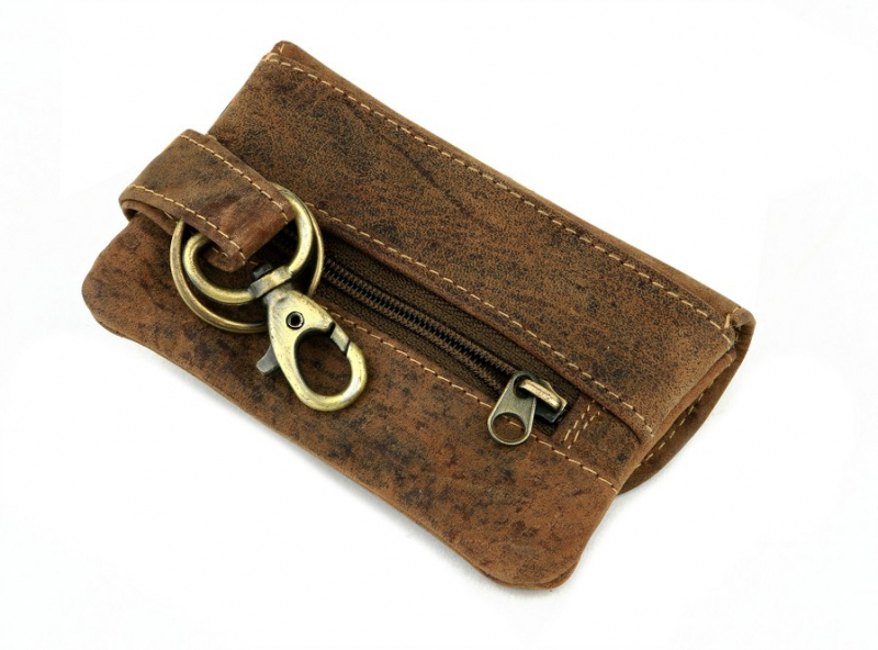 Kožené puzdro na kľúče a mince. S vnútorným aj vonkajším príveskom na kľúče.