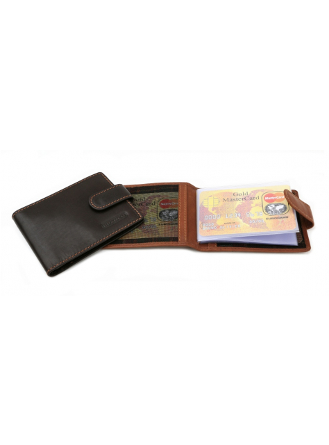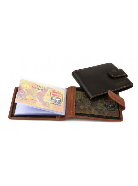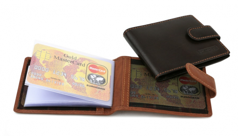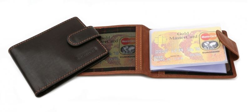 Puzdro na kreditné - kožený obal so zapínaním na pracku obsahuje vo vnútri 10 plastových obojstranných listov (formát veľkosti bankovej karty 9 x 6 cm) a 2 bočné priehľadné priečinky (vhodné na karty, vizitky, nový formát osob. dokladov).