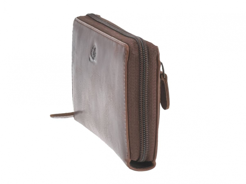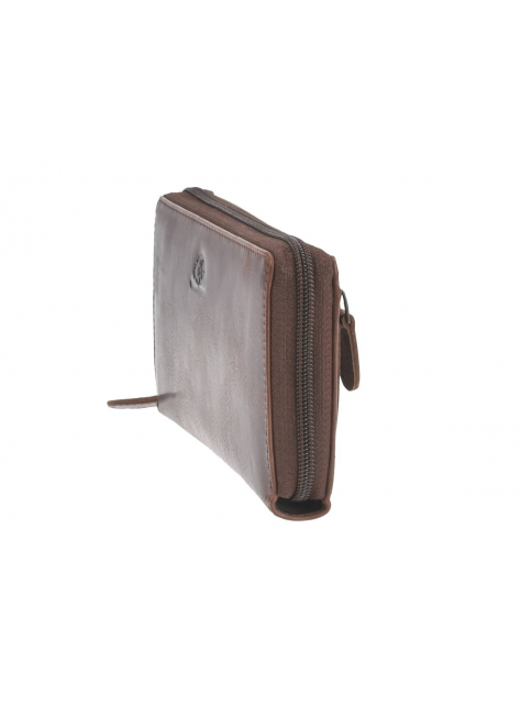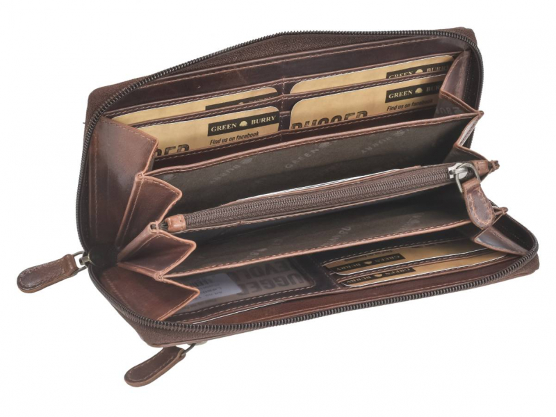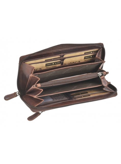 Kožená peňaženka veľkého typu s RFID ochranou kariet nemeckej značky Greenburry - vybavená celoobvodovým zapínaním na zips. Model „Rugged“ sa vyznačuje teakovou hnedou farbou a ponúka rustikálny a robustný vzhľad. Peňaženka je vyrobená z kvalitnej kože, ktorá zaisťuje odolnosť a eleganciu. Ideálna pre bezpečné uloženie peňazí, kariet a iných cenností a pre tých, ktorí ocenia praktické doplnky vysokej kvality. Vhodná na nový aj starší typ osobných dokladov.