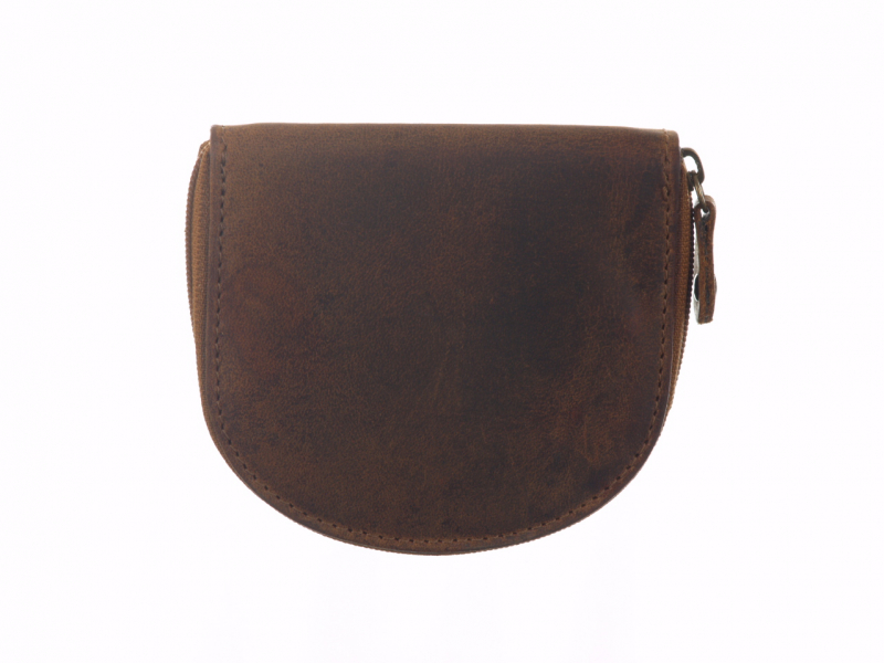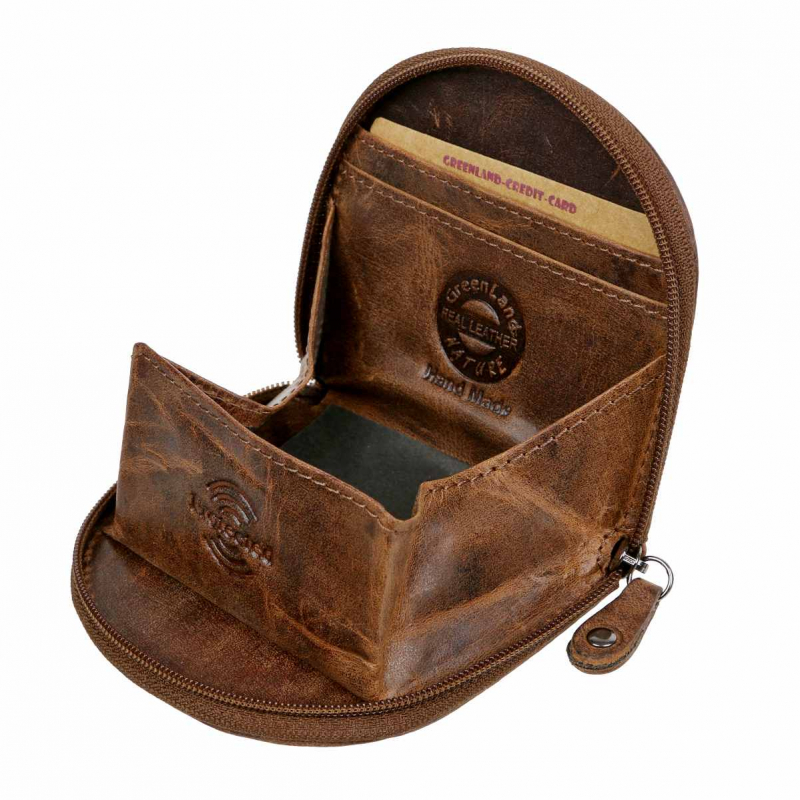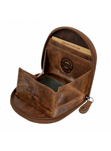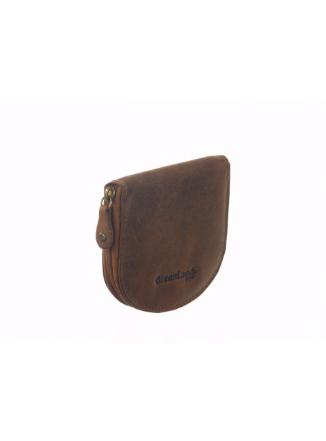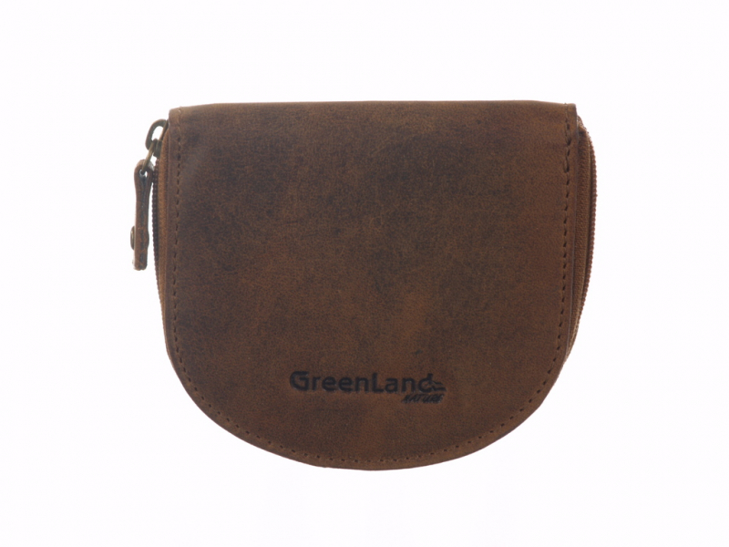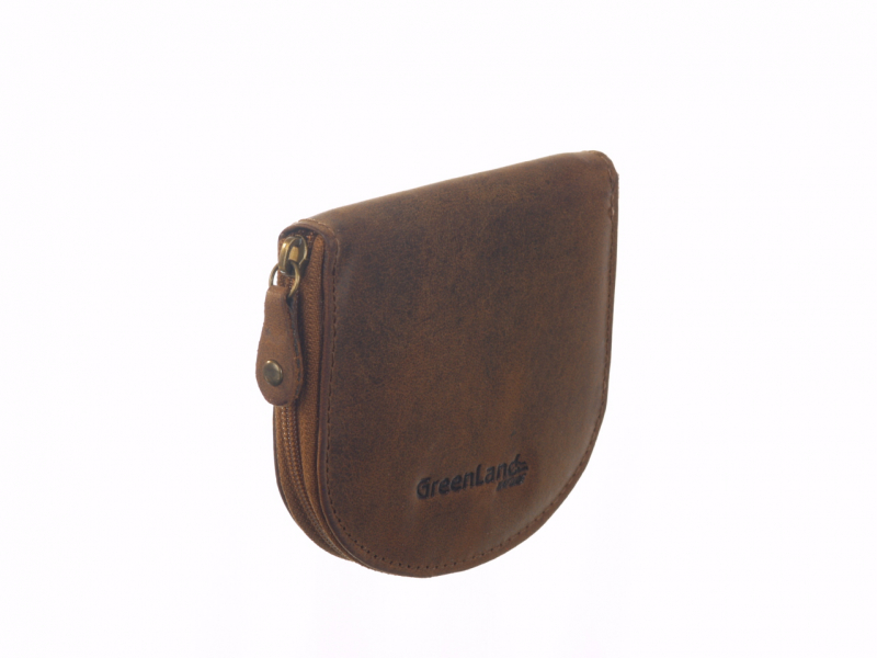 Peňaženka na mince a 2 kreditné karty GreenLand MONTENEGRO. Vyrobená z kvalitnej hovädzej kože. Stredný formát do ruky. Pevný tvar vo forme podkovy so zapínaním na zips.