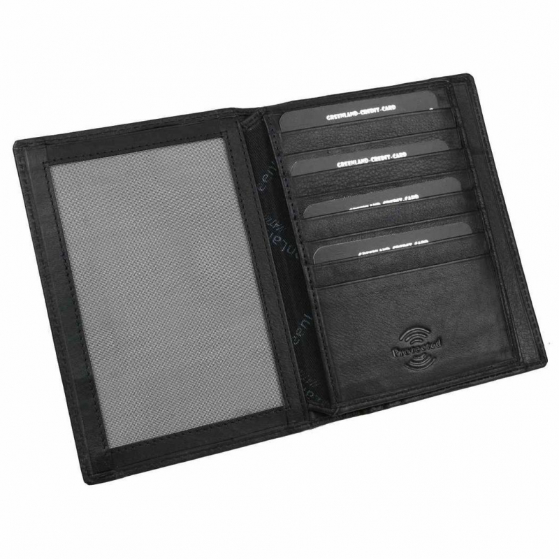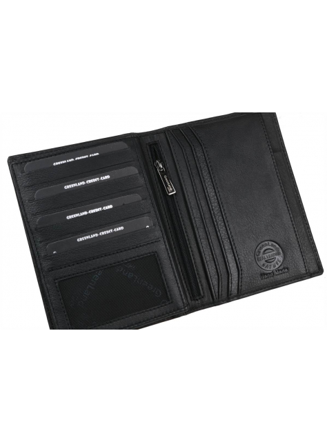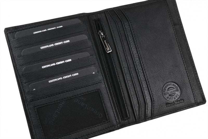 Luxusné kožené puzdro GREENLAND určené na karty a osobné doklady, cestovné pasy. Priestranný veľký formát 16 x 11 cm s prehľadným usporiadaním.