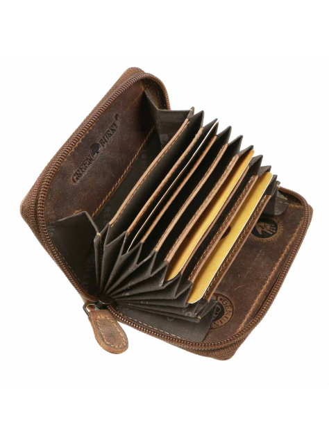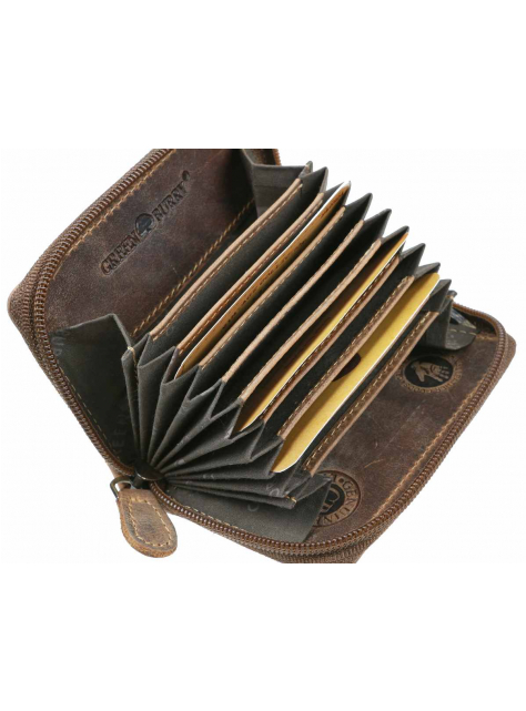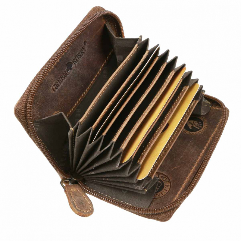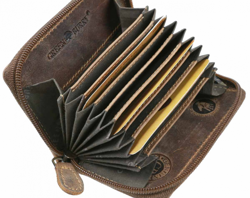 Kožené pudro so zipsom značky GreenBurry s RFID ochranou pred krádežou dát - určené na karty, poslúži tiež ako vizitkár. Malý praktický formát s prehľadným vejárovým usporiadaním.