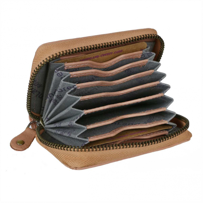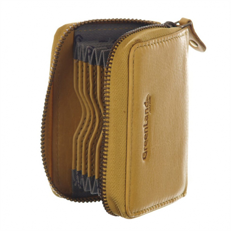Kožené pudro so zipsom s technológiou RFID značky GREENLAND NATURE - určené na karty, poslúži tiež ako vizitkár. Malý praktický formát s prehľadným vejárovým usporiadanímm .