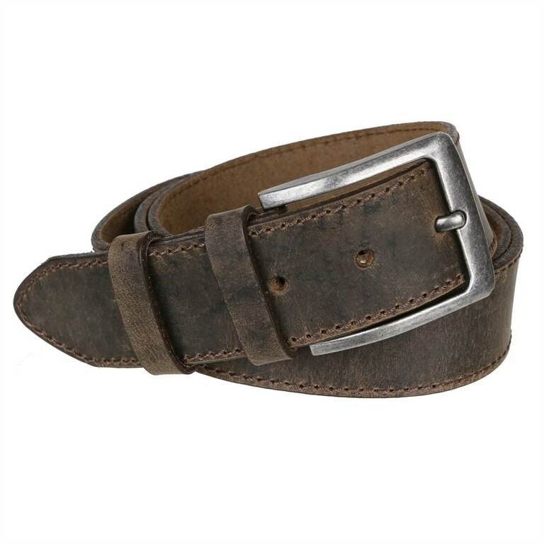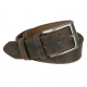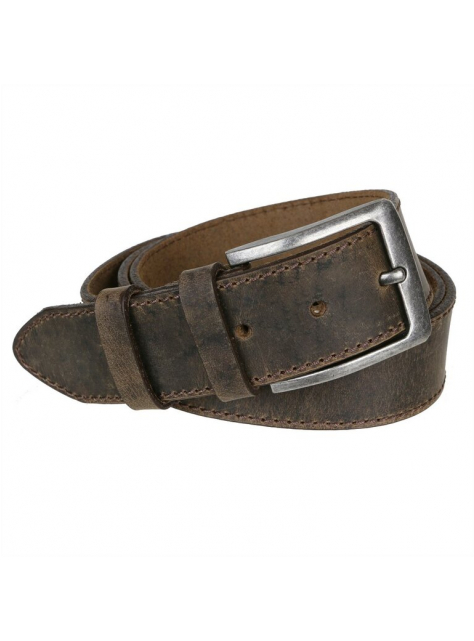 Kožený opasok zn. MERCUCIO - remeň z masívnej extra poddajnej kože v brúsenej rustikálnej úprave s okrajovým prešívaním. Skracovateľný na požadovanú dĺžku. Satinovaná zmatnená pracka na strmeň z masívneho kovu, prevedenie šedostrieborné tmavé. Vhodný do džínsov aj nohavíc.