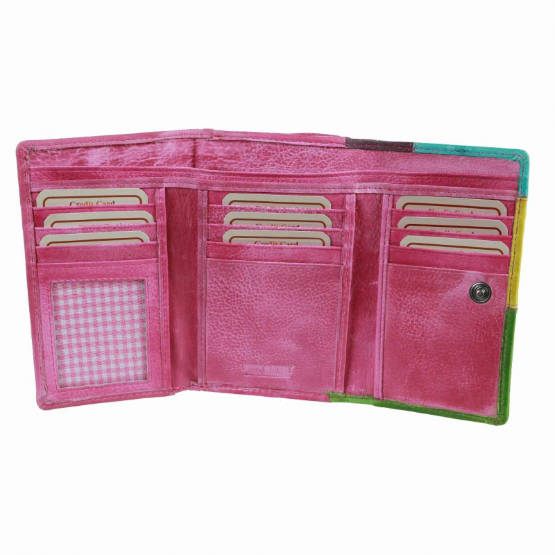 Ružová kožená peňaženka pre 12 kariet GreenBurry