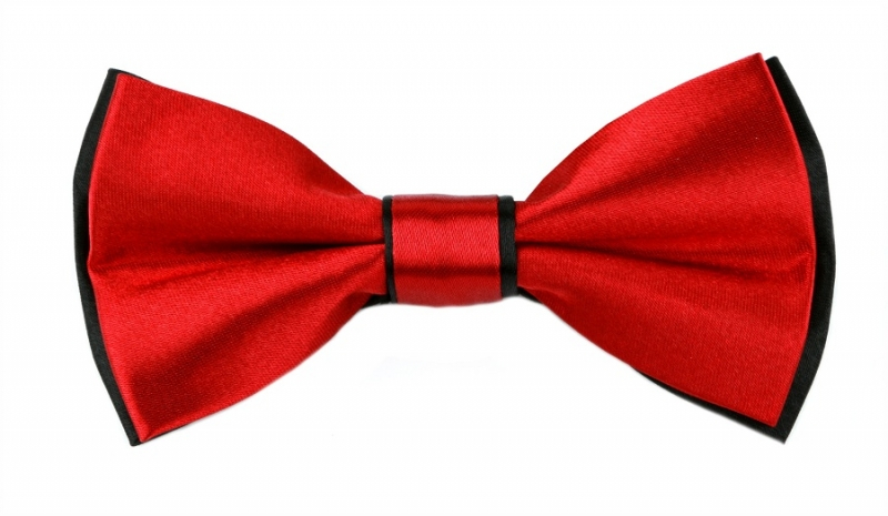 Saténový motýlik s vreckovkou ORSI červeno - čierny MO-1002B12