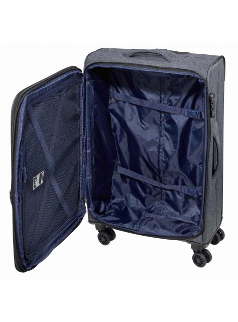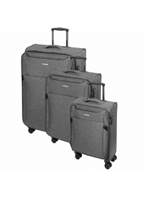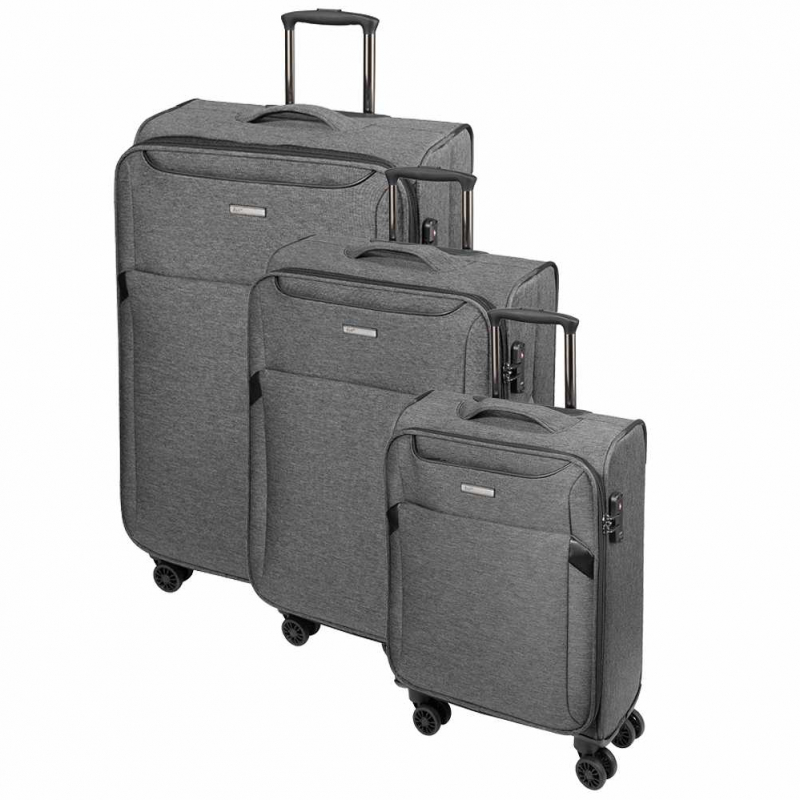 Set 3 cestovných kufrov D&N v sivo- čiernej farbe. Extra ľahké nylonové kufre z nepremokavého nylonu 600D a 900D, kufor je jednoducho umývateľný bez obáv ho vyčistíte od prachu a špiny saponátom a osušíte utierkou..