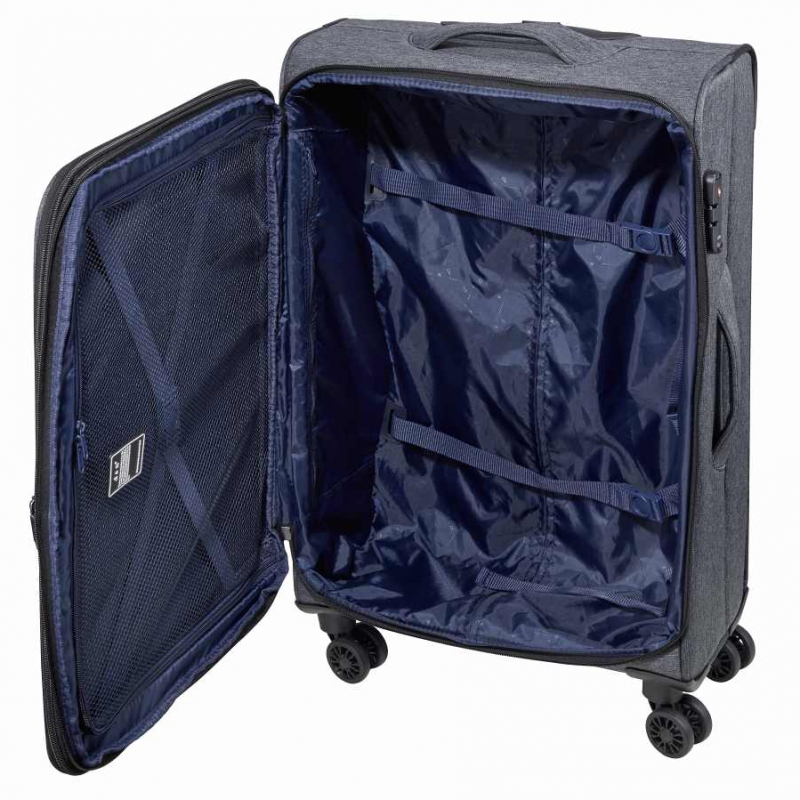 Kufre stoja na 4 kolieskach - otáčavých o 360°. Sú vyrobené z tvrdeného plastu. Na vrchu kufra sa nachádza textilná rúčka pre lepšie prenášanie, taktiež je kufor vybavený aj výsuvným teleskopickým držiakom, na ktorý môžete pripnúť ďalšiu batožinu, alebo malý kabínový kufrík.