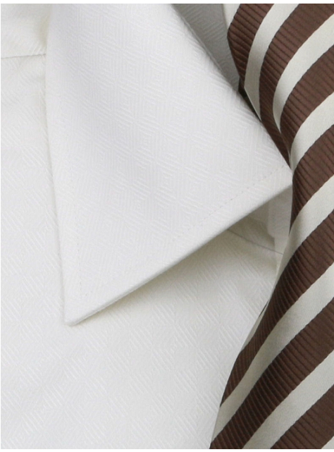 - elegantný otvorený golier, kvalitná výstuž - vhodný je výraznejší kravatový uzol.