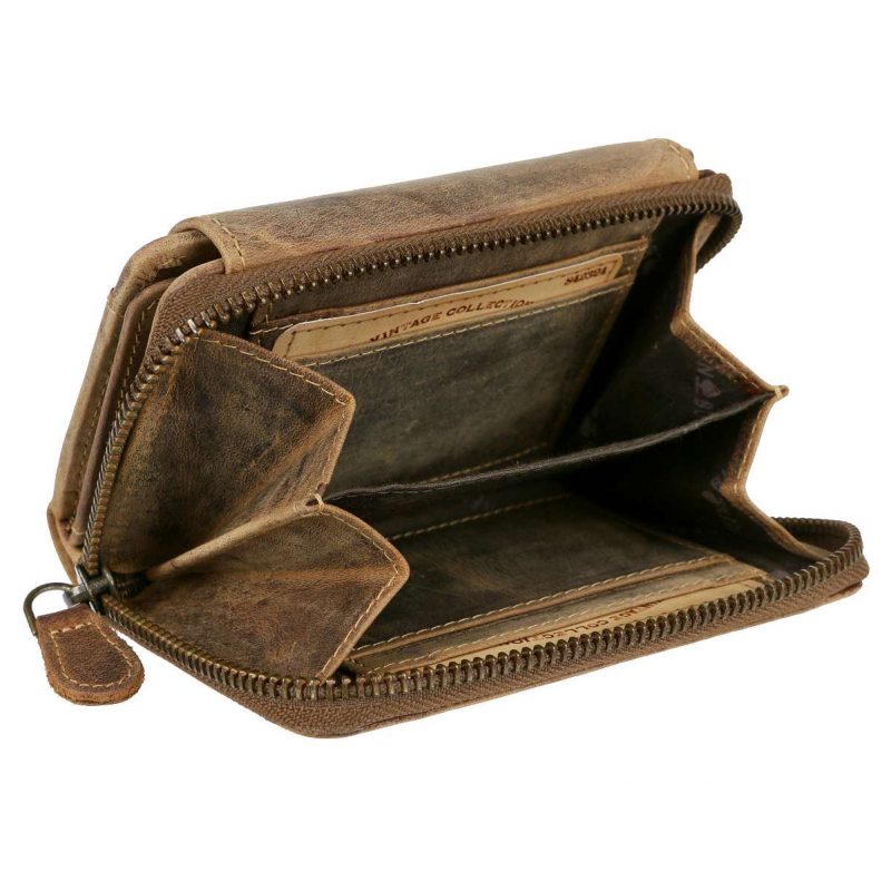 Obsahuje 2 samostatné časti s uzatváraním kovovým patentom a so zatváraním na zips. Vhodná pre väčšie množstvo dokladov, kariet, bankoviek a mince. Vyrobená z kvalitnej masívnej kože prepychového vzhľadu v zamatovo-hladkej brúsenej úprave.