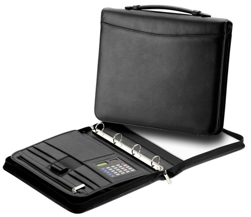 - 1 zapínacia priehradka so zipsom , 2 priečinky na perá, 4 mensie priečinky na uloženie kreditných kariet a 1 malá priehradka na doklady, kalkulačka