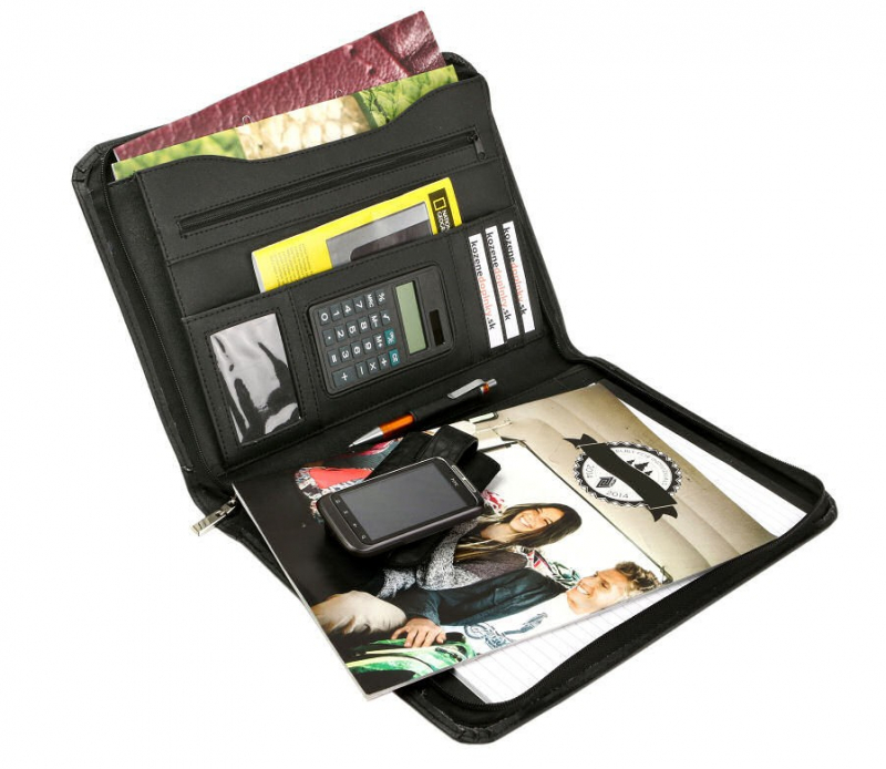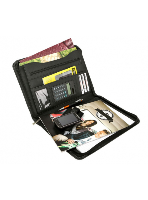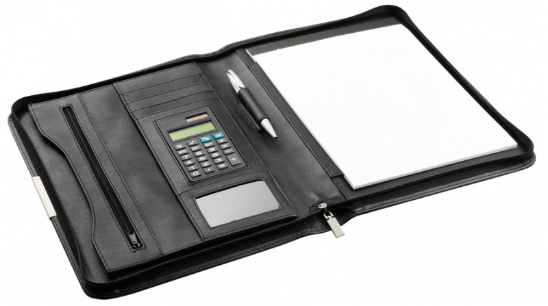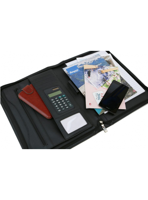 Spisovka zo syntetickej kože so zapínaním na zips, formát pre dokumenty A4. Masívne prevedenie, polstrované (vystužené) steny. Dodávaná s poznámkovým blokom.