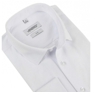 Biela slim košeľa VENERGI, tkaný vzor, kr.rukáv