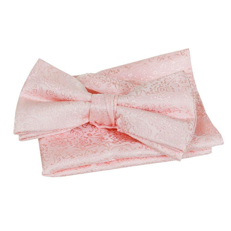 Elegantná pánska spoločenská súprava - motýlik a vreckovka s tkaným kvetinovým motívom.