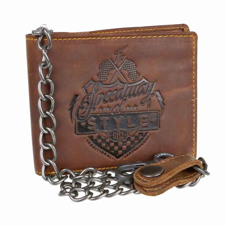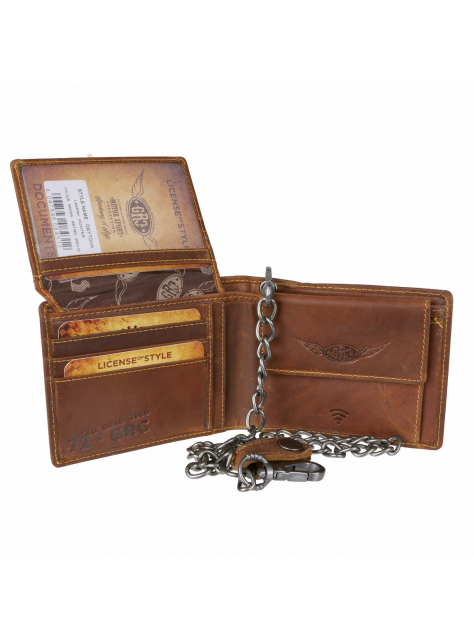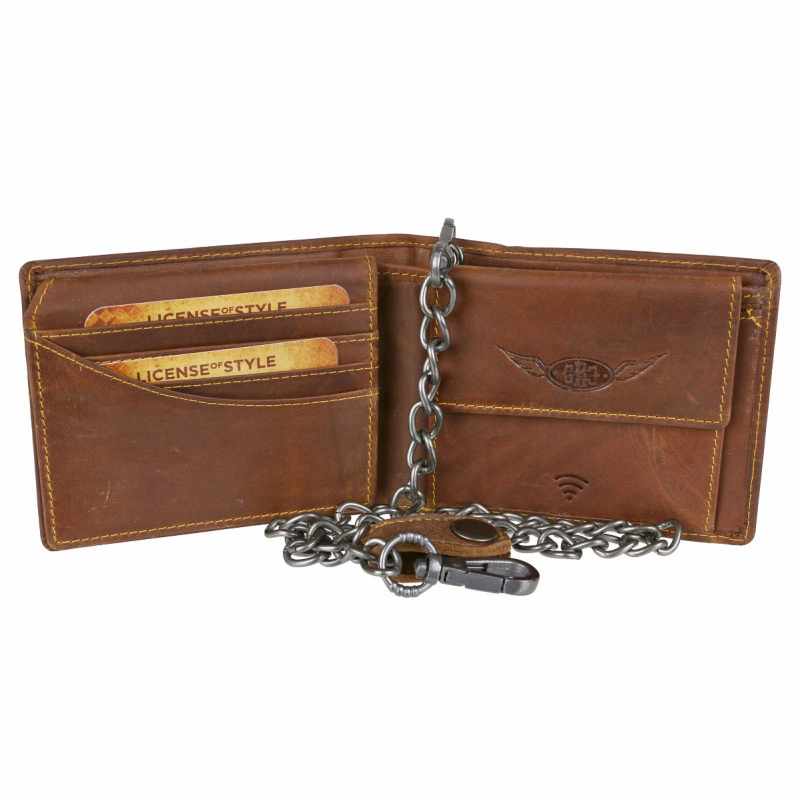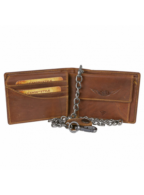 Priestranná pánska peňaženka v športovom štýle - s odnímateľnou retiazkou, výrazným vintage embosovaným pretekárskym motívom a RFID ochranou - VINTAGE model z pretekárskej kolekcie zn. GREENBURRY.