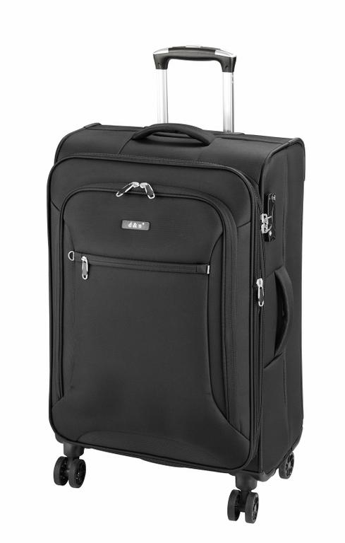Stredný cestovný kufor D&N v čiernej farbe. Extra ľahký kufor z nepremokavého nylonu 200D a 500D, kufor je jednoducho umývateľný.