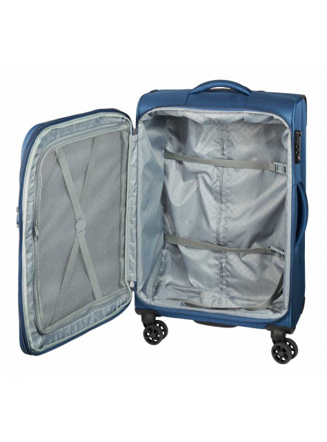 Kufor je vybavený 4 kolieskami z tvrdeného plastu- otáčavé o 360°. Kufor je opatrený dvojdielnym zipsom so zapínaním do TSA zámku.