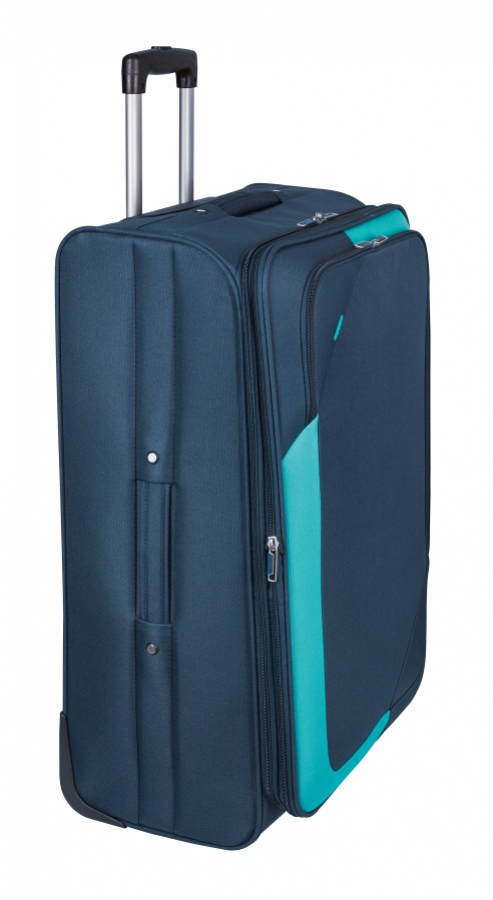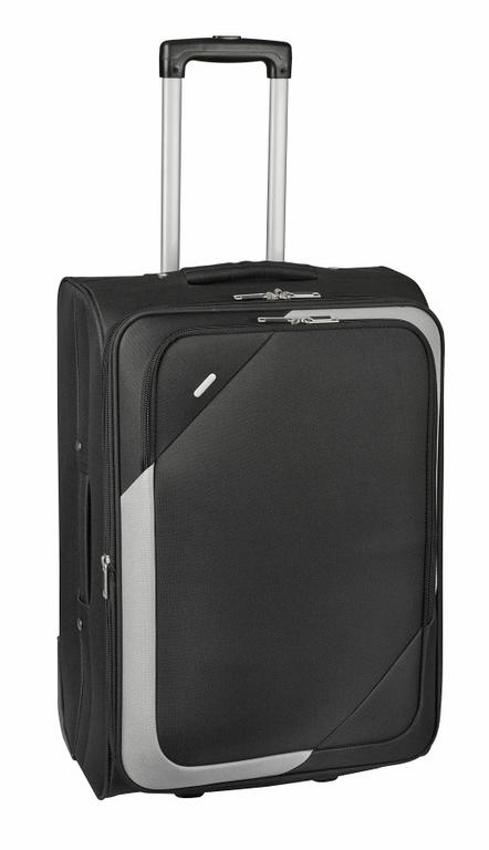Na boku a vrchu kufra sa nachádza textilná rúčka pre lepšie prenášanie, taktiež je kufor vybavený aj výsuvným teleskopickým držiakom.